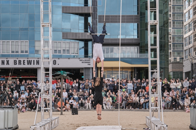 On opening night, Quebec’s Machine de Cirque performed the circus “La Galerie,” with local audiences gathering to enjoy the show. France’s La Compagnie des Quidams performed “Herbert’s Dream” at Gwangalli Beach on Saturday night, drawing a large crowd. Even during the showcase performances at Kyungsung University Concert Hall, where selected artists performed 15-20 minute segments, students and audiences freely came and went, enjoying the performances.