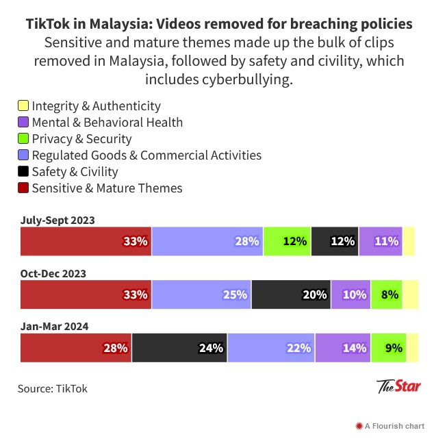 A total of about 78,000 videos in Malaysia with such content were removed by TikTok during the first three months of this year, based on data from the social media giant.