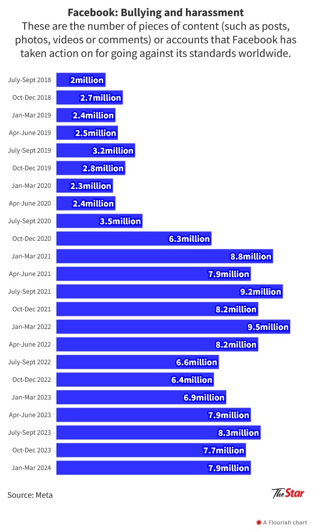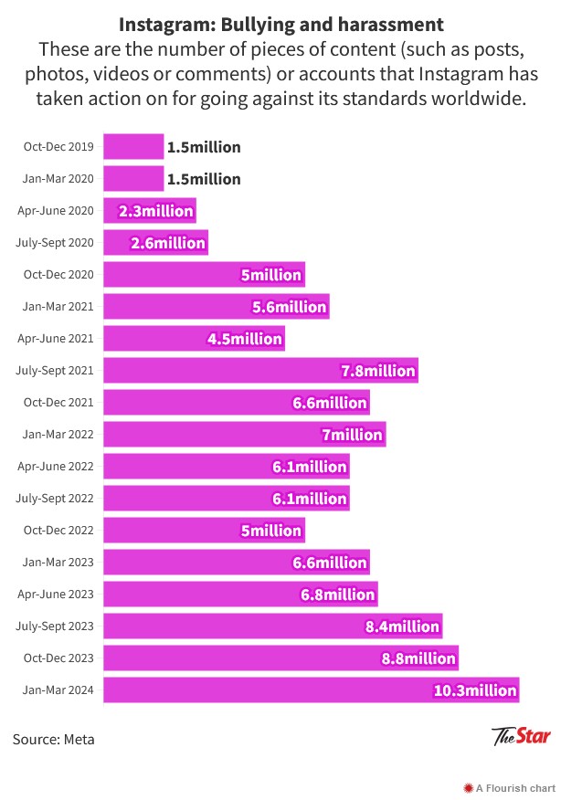 Similarly, there has also been a surge in action taken by Facebook and Instagram against content that went against their standards for bullying and harassment.
